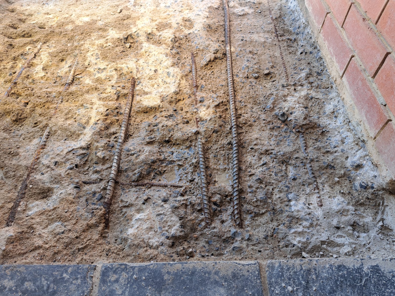Patch mortar for repair of spalled concrete caused by corrosion of reinforcing bars.