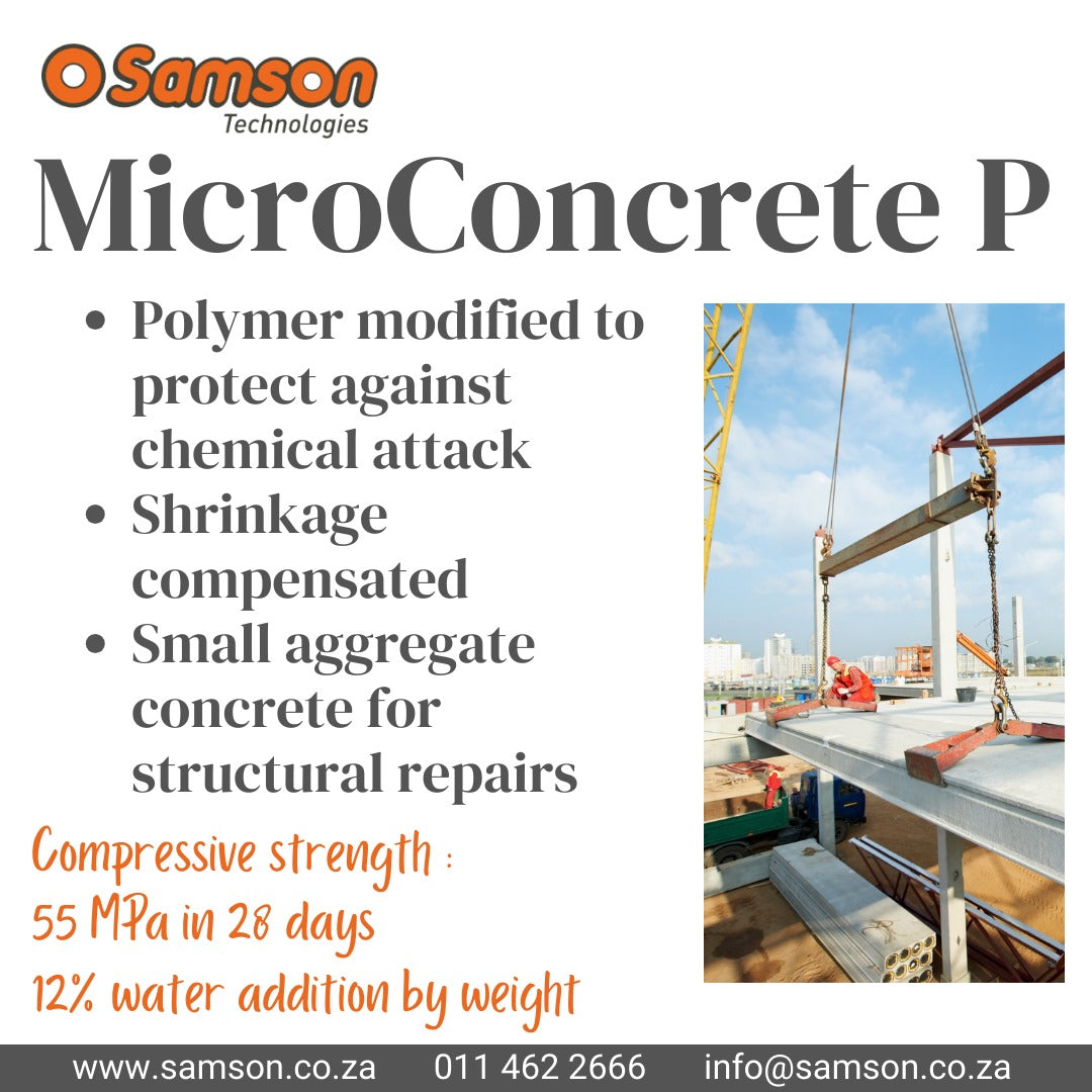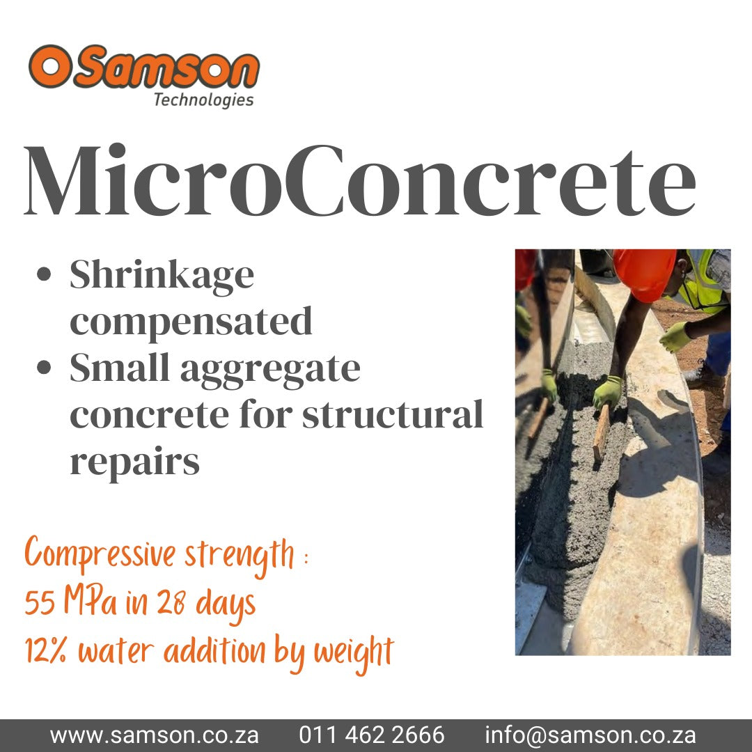 MicroConcrete is formulated with cements, secondary cementitious materials, superplasticisers and chemicals to control plastic and hardened phase shrinkage. A 3- 5mm stone chip aggregate is included. MicroConcrete contains micro-crystalline technology.